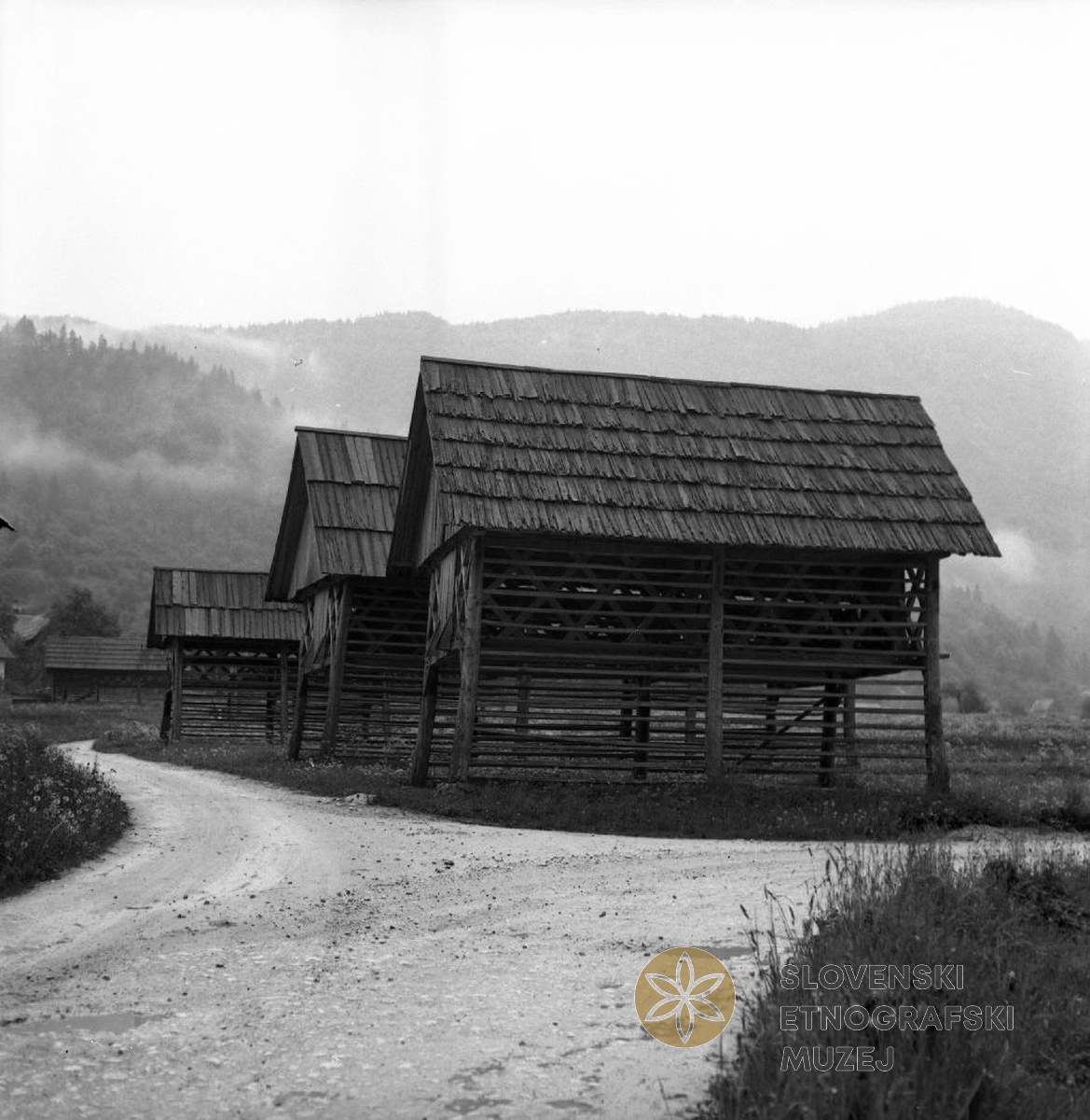 Kozolci pred vasjo Studor v Bohinju. Teren 26 - Alpska hiša - Gorenjska (1970).