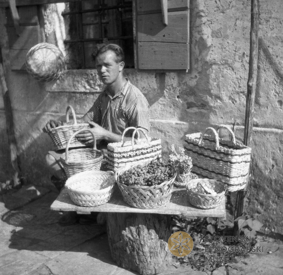 Kavrečič Anton, Kortina 106 (Sv. Anton) plete razne košarice. Teren 3 - Področje med Rižano in mejo...