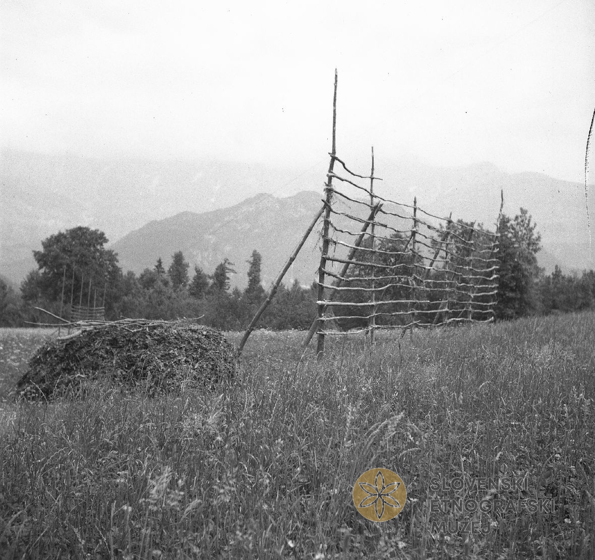 Kozolec za žito izven vasi Svino. Teren 7 - Kobarid, 3.7. - 3.8.1951.