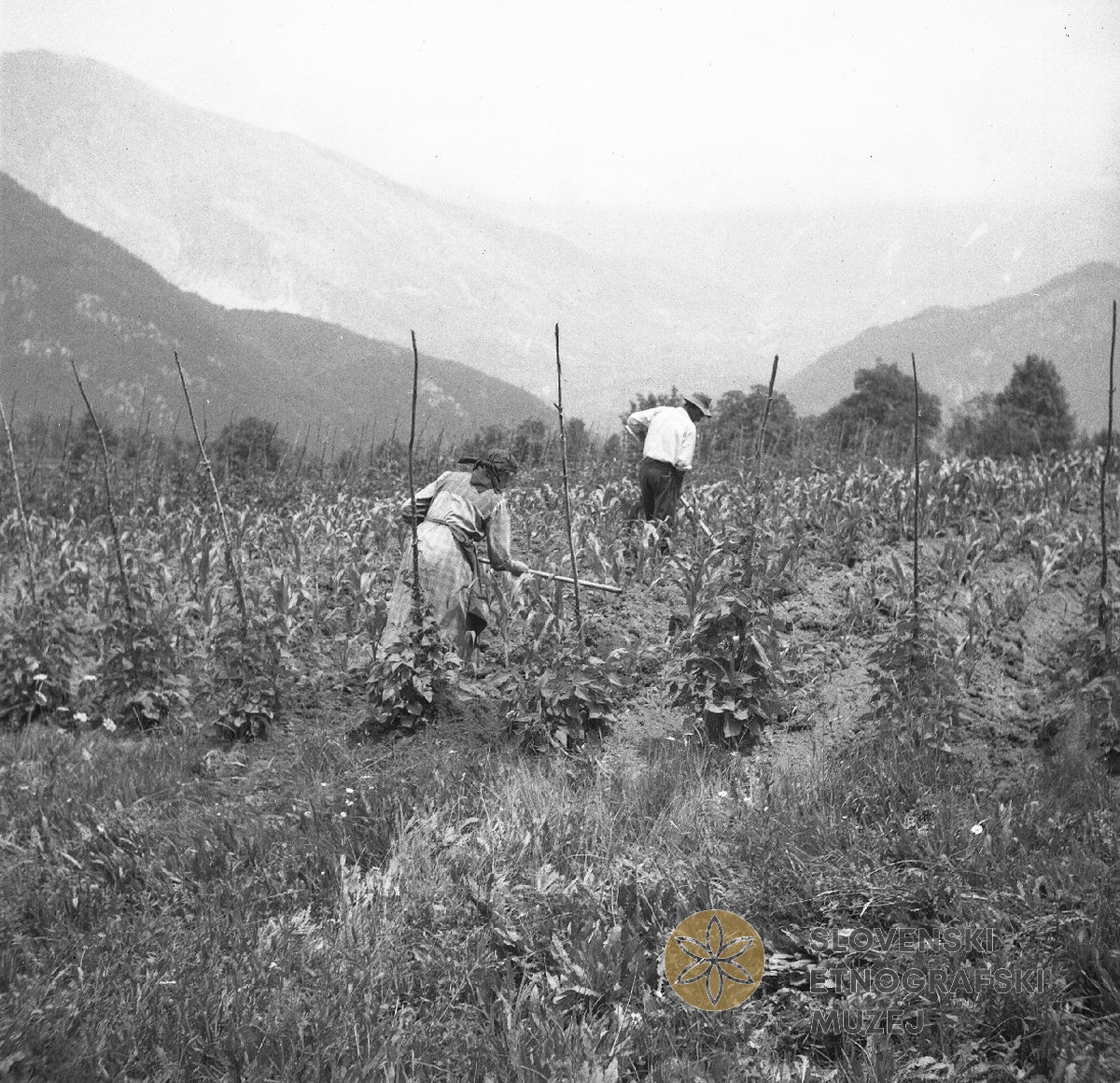 Sivec Ivan in Uršič Marija iz Svina zagrebata krompir. Teren 7 - Kobarid, 3.7. - 3.8.1951.