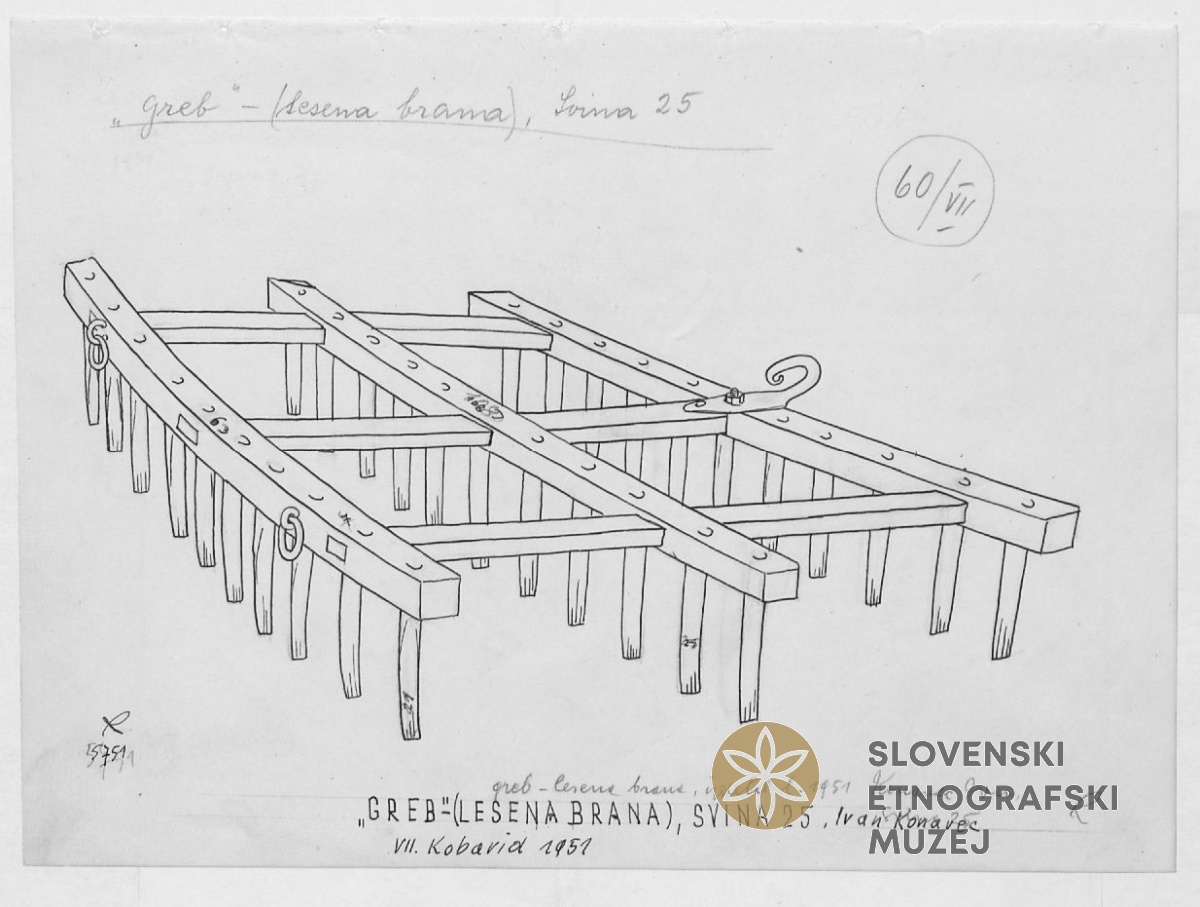 "Greb" - lesena brana iz l. 1951. Lastnik Ivan Konavev, Svino 25...