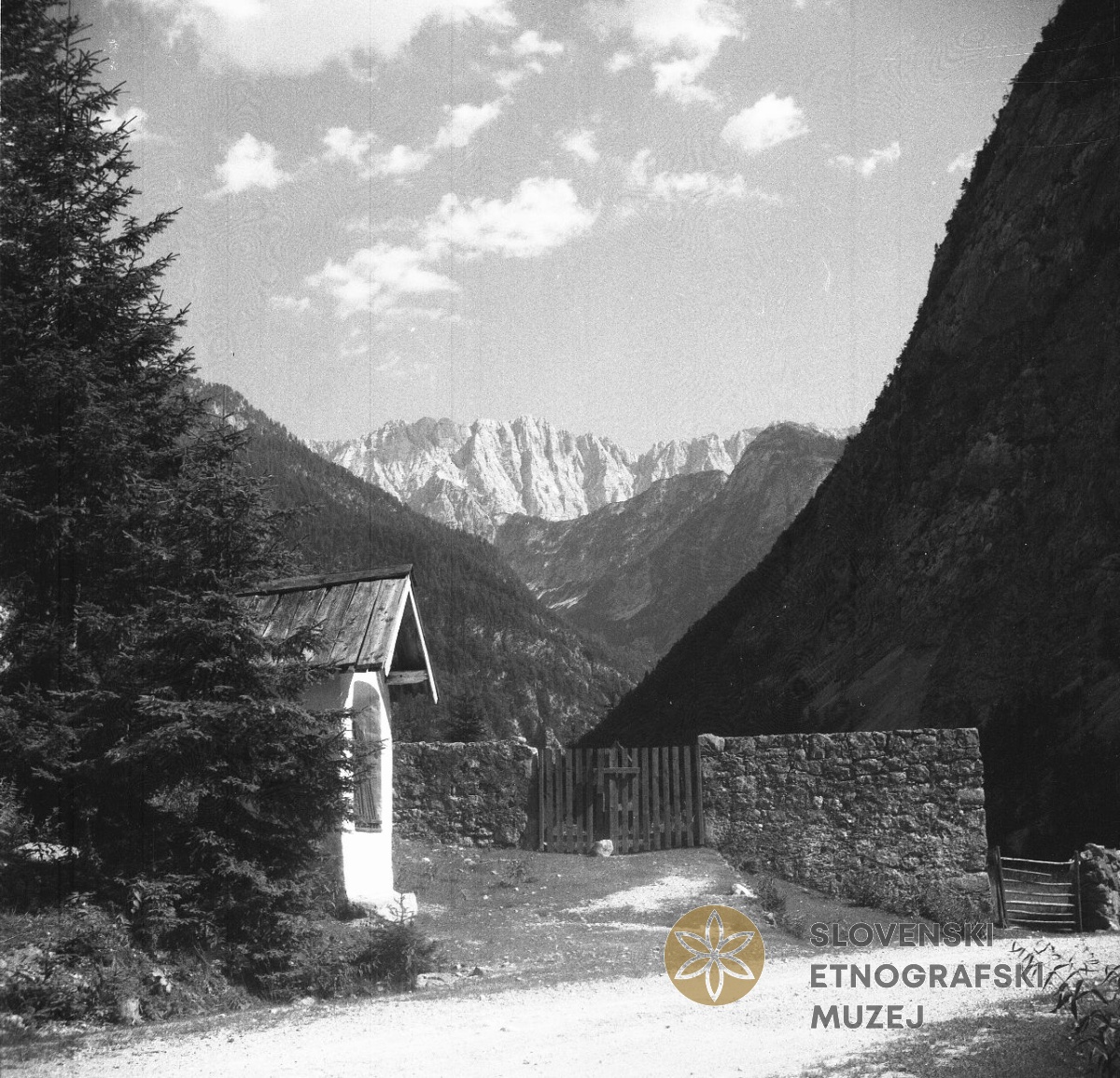 Špikova kapelica pri cerkvi v Trenti. Teren 8 - Trenta - Bovec, 1.7. - 31.7.1952.