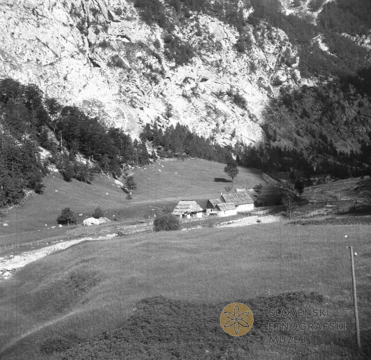 Skupina hiš v Sp. Trenti ob Soči. Teren 8 - Trenta - Bovec, 1.7. - 31.7.1952.