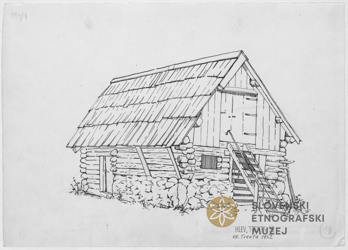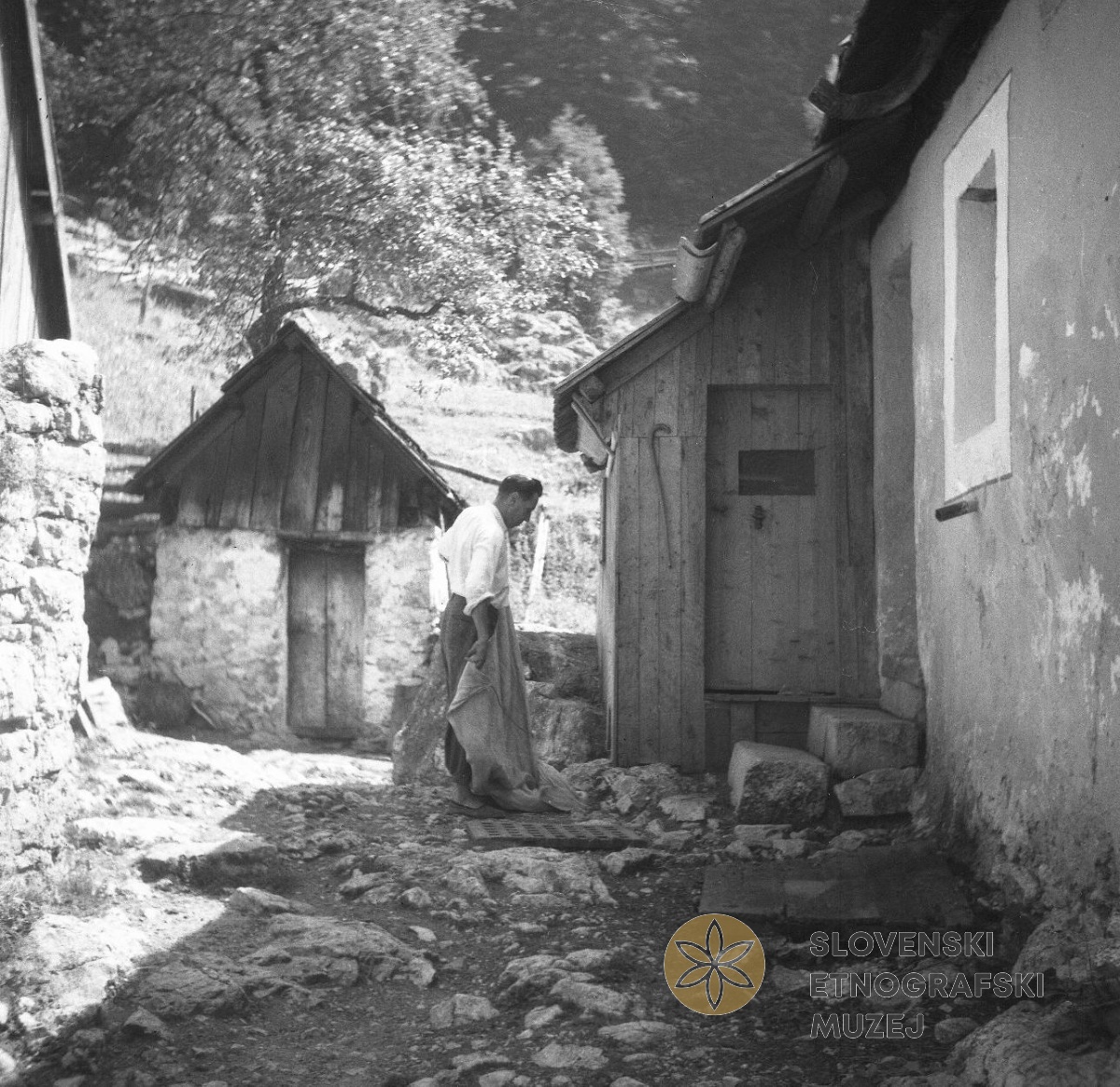 Stara, še pollesena hiša pri Mas?lci, Sp. Trenta 14. Teren 8 - Trenta - Bovec, 1.7. - 31.7.1952.