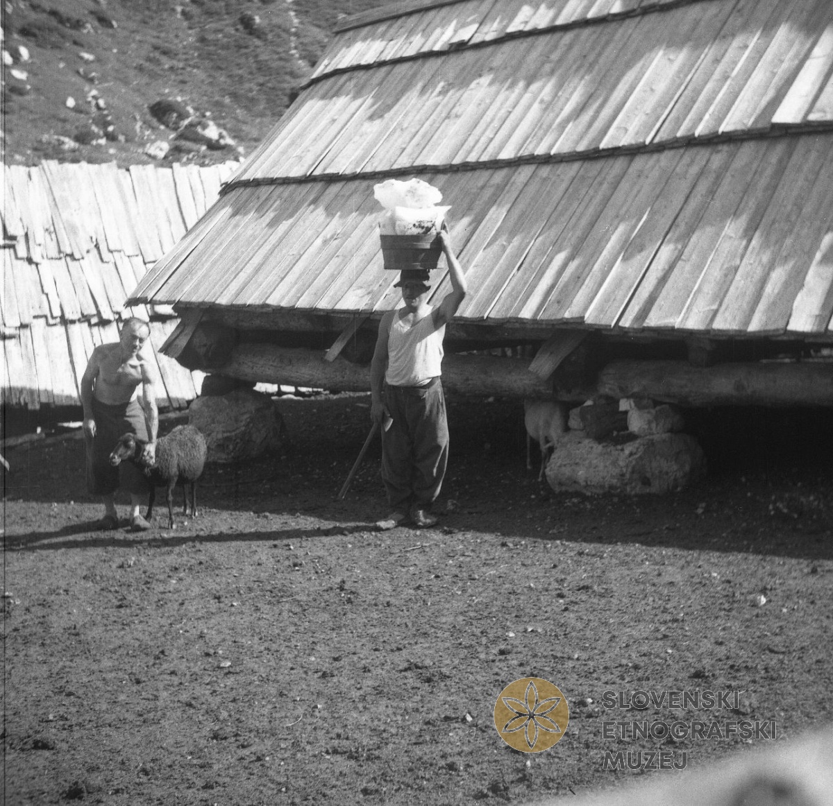 Planina Zapotok, ovce na stanu. Teren 8 - Trenta - Bovec, 1.7. - 31.7.1952.
