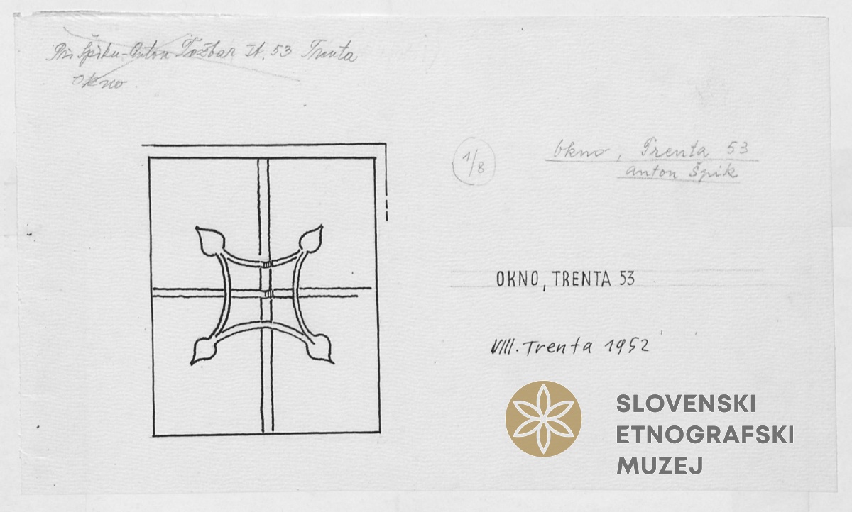 Streha z značilnim dimnikom. France Kverh, Trenta 70 - Zapoudnam. Teren 8 - Trenta - Bovec, 1.7. -...