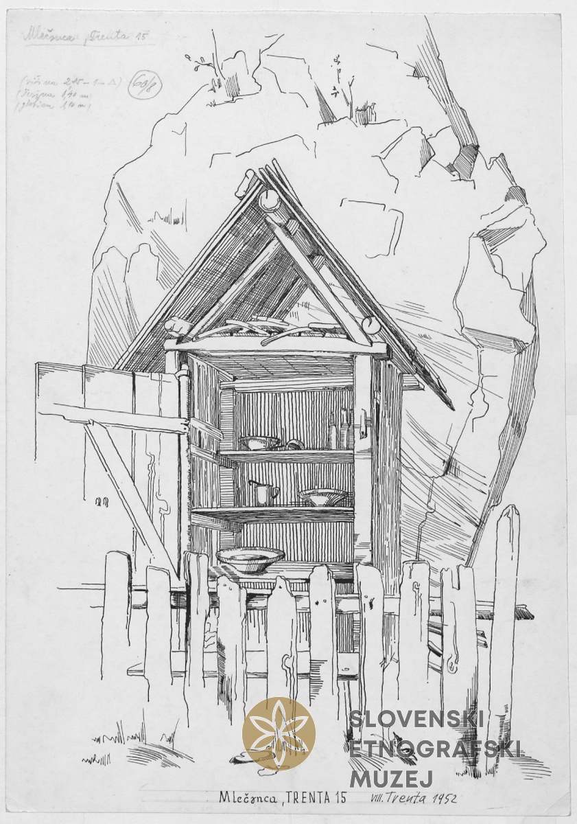 "Bajta" v kateri sirijo, Zapoudnam - Trenta 70, Franc Kverh. Teren 8 - Trenta - Bovec, 1...