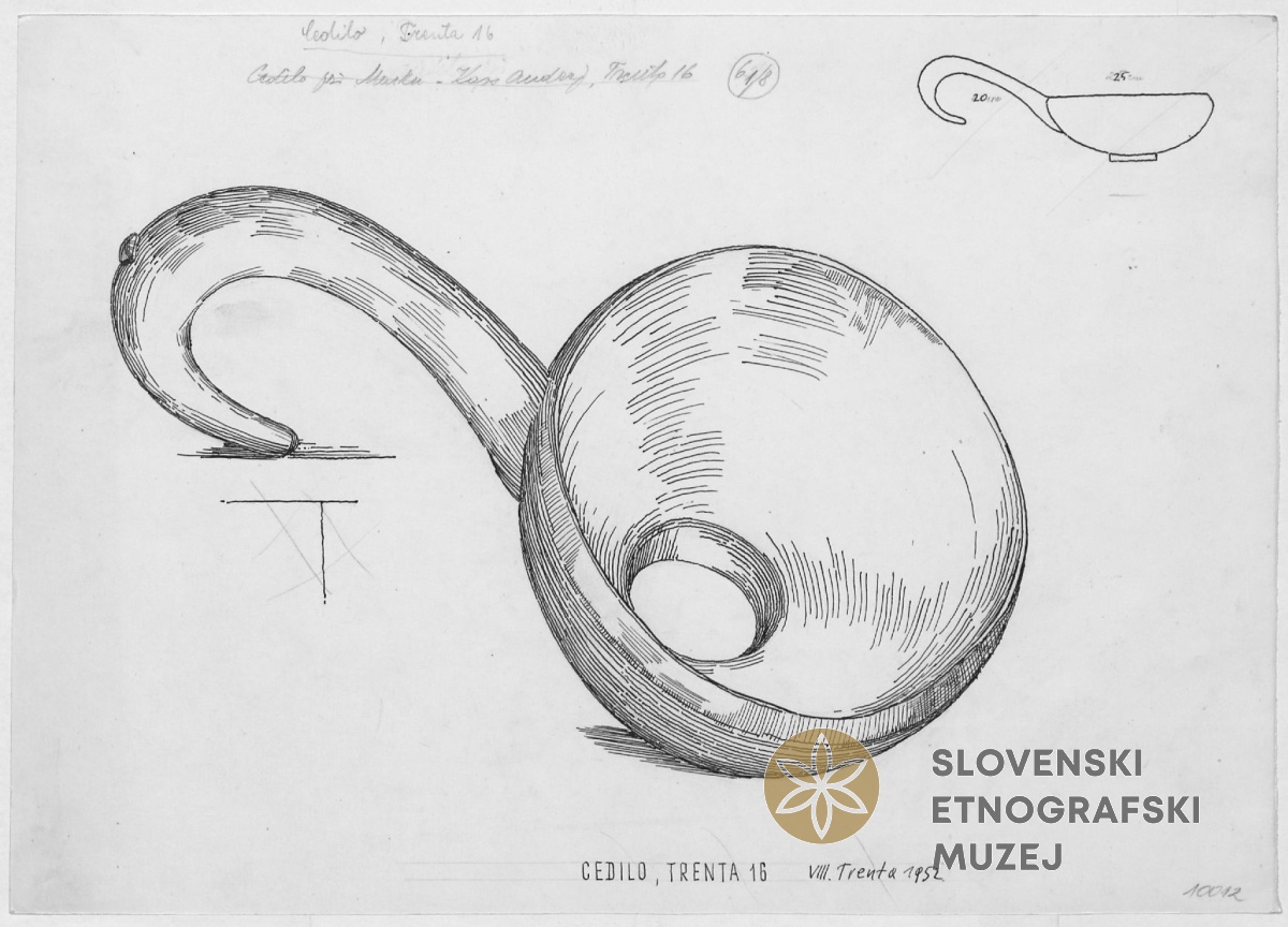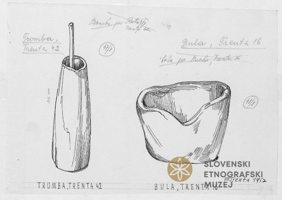 Bajta za sirjenje in mlečenca (+ za kuho prašičem), Trenta 52, pri Pauerji - Komac Alojz. Teren 8...