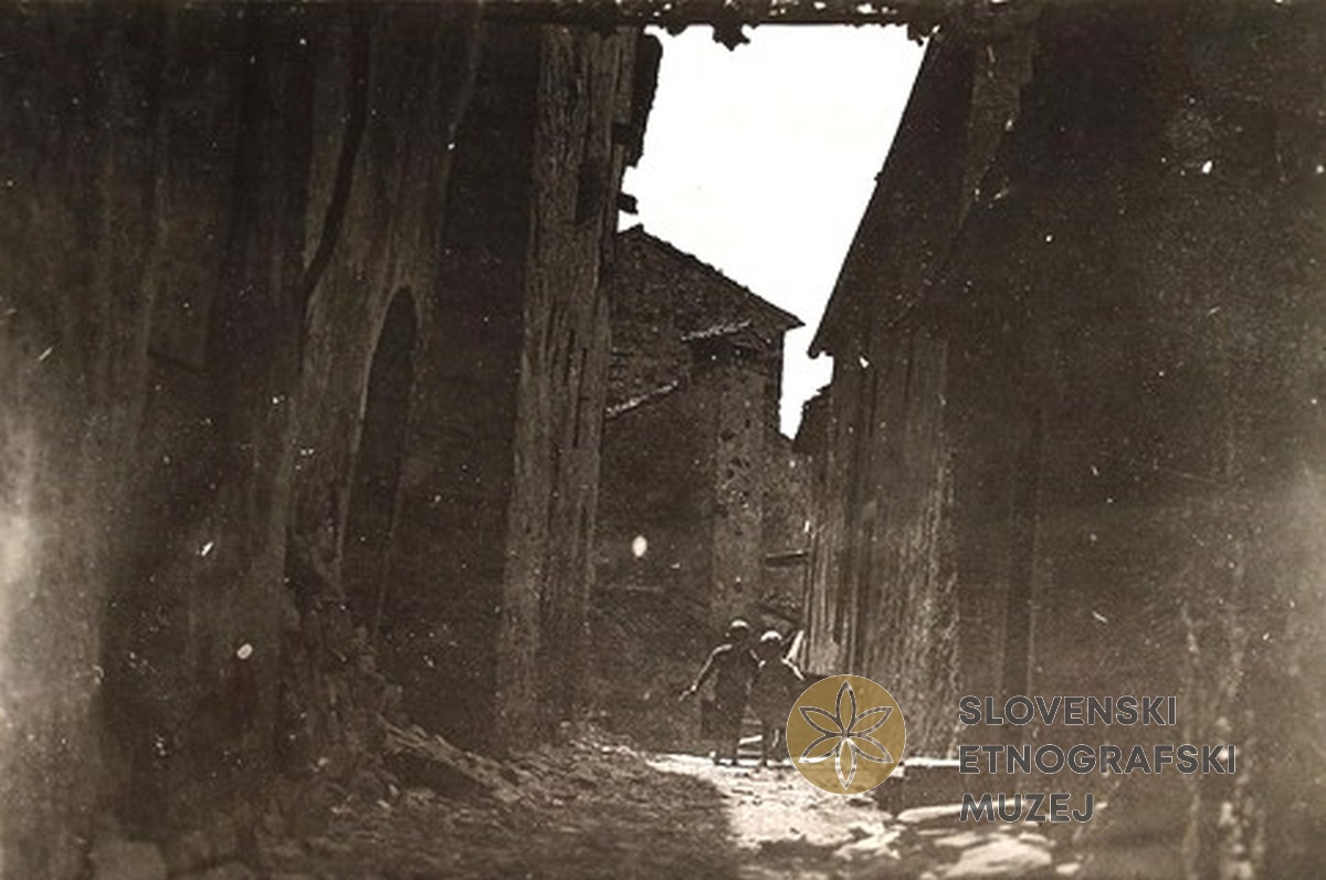 Pilonov komentar: Vhod v mesto Sveti Križ na Vipavskem. Originalne Pilonove fotografije so v albumu...