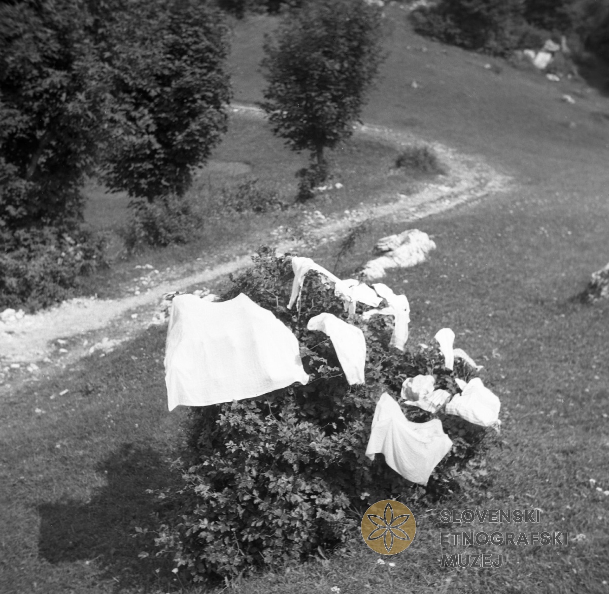 Perilo sušijo tudi po grmovju, Vojsko- Mrzla Rupa, pri Kalenc. Teren 16- Črni Vrh- Vojsko pri...