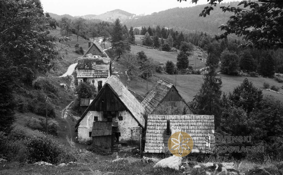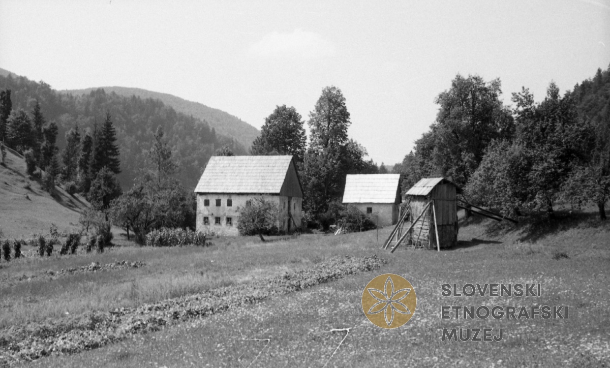Podobnikova šupa (levo) in hiša, Vogalce (Vojsko). Teren 16- Črni Vrh- Vojsko pri Idriji (1.-28.8...
