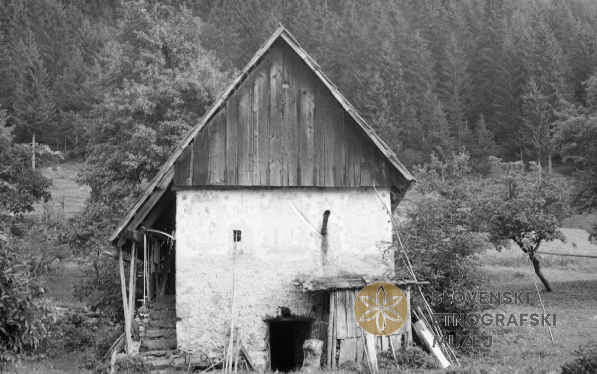 Klet (kašča), spodaj kovačija. Nad vrati odprtina za dim, "u Gač?nk" (Skok Andrej) (spada...