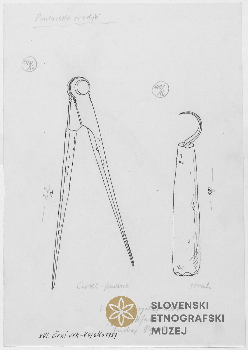 Klina (ravna), vintarsko orodje (tu za šinklne krivit), Vojsko 67 (Vogalce), pri Štefanu, Andrej...