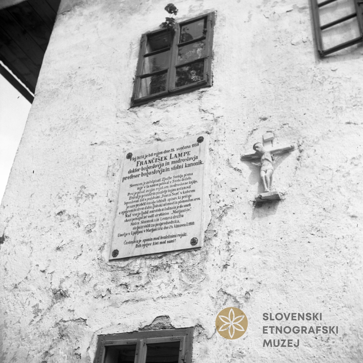 Spominska plošča v spomin dr. F. Lampetu na njegovi rojstni hiši pri Lampetu, Zadlog 27. Poleg...