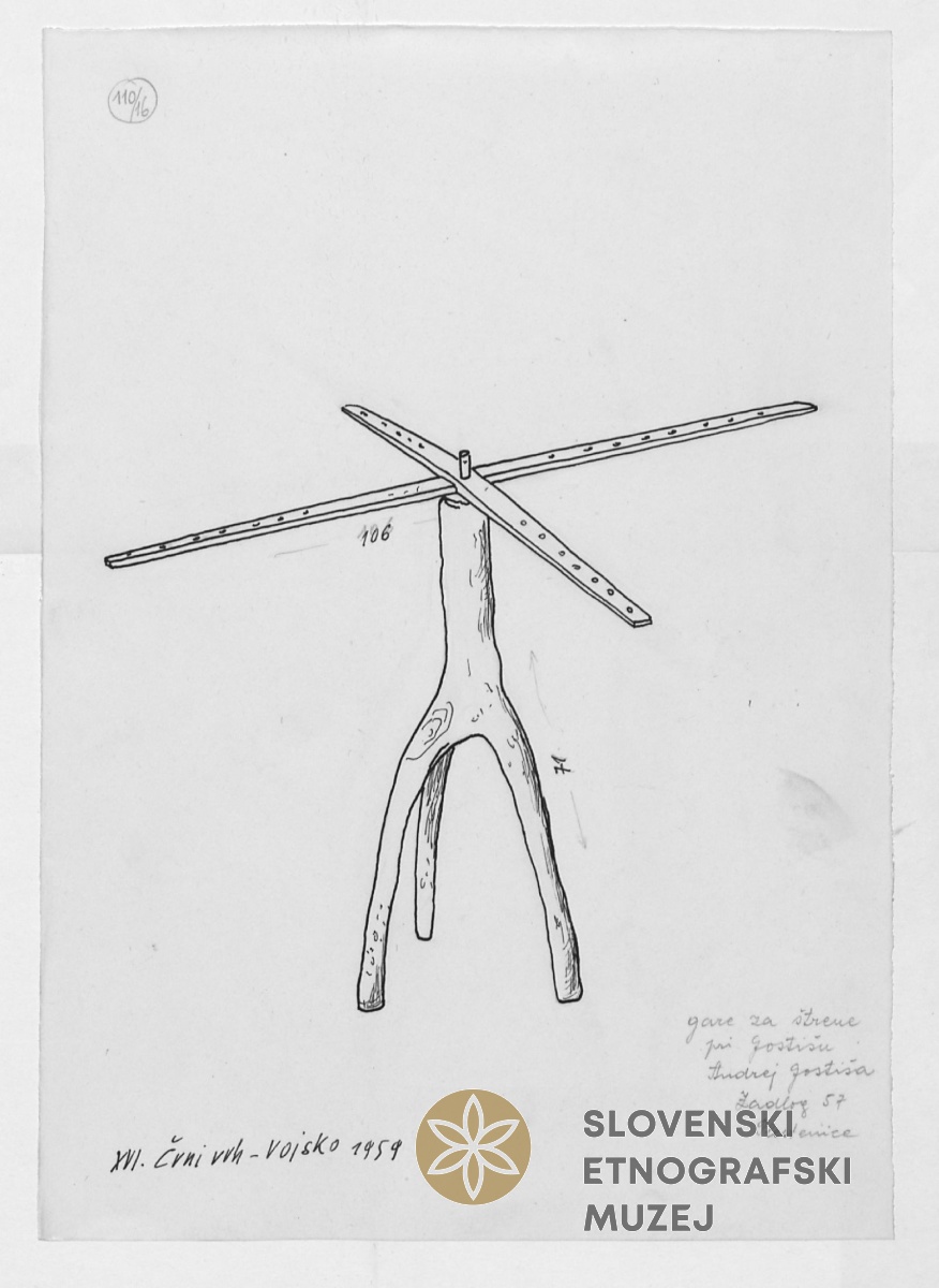 Stol za štrene, na njem tekau?nca, pri Gostišu, Andrej Gostiša, Zadlog 57.