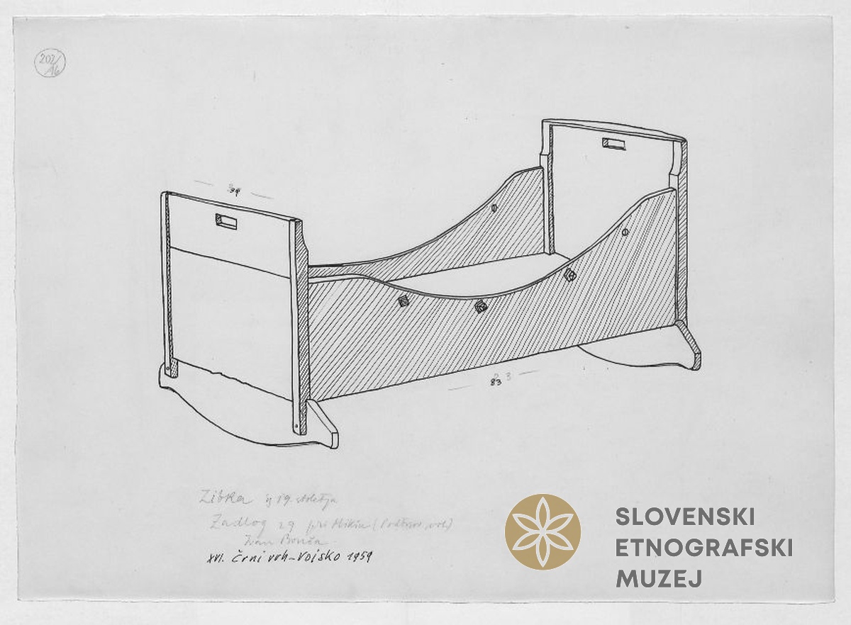 "Zibka" (zibelka) (iz 19. stoletja), Zadlog 29, pri Mikšu, Bonča Ivan. Teren 16- Črni Vrh...