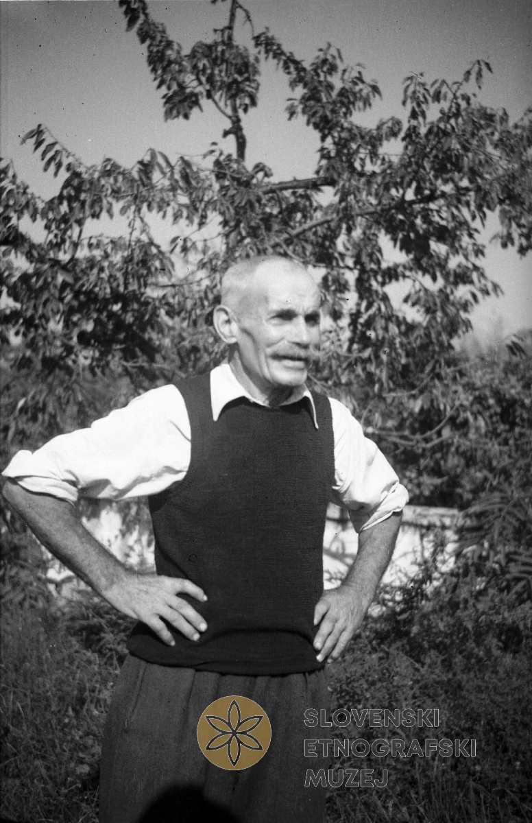 Kosec s posebnim kosjem za pšenico (kosa z grablami), Šlomberk 4, pri Klaževih. Teren 10- Goriška...