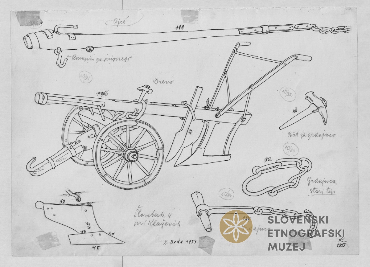 Drevo- novejše s kolci ("čiridžilom"), ojcami (ojce), grdainco, jarmom, Šlomberk 4, pri...
