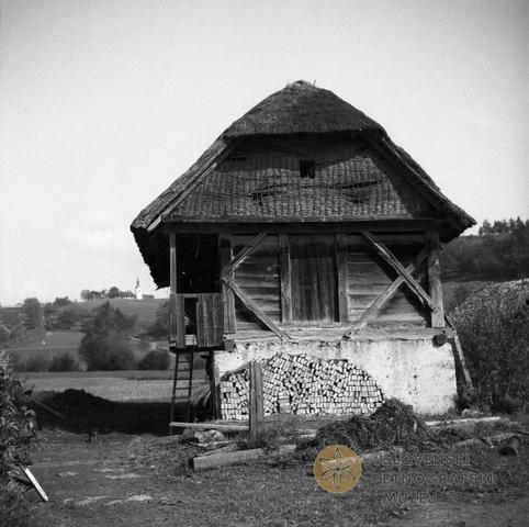 Pod, spodaj štala (hlev), oboj poda pleten. Gorenja vas 4. Šepec Jože.