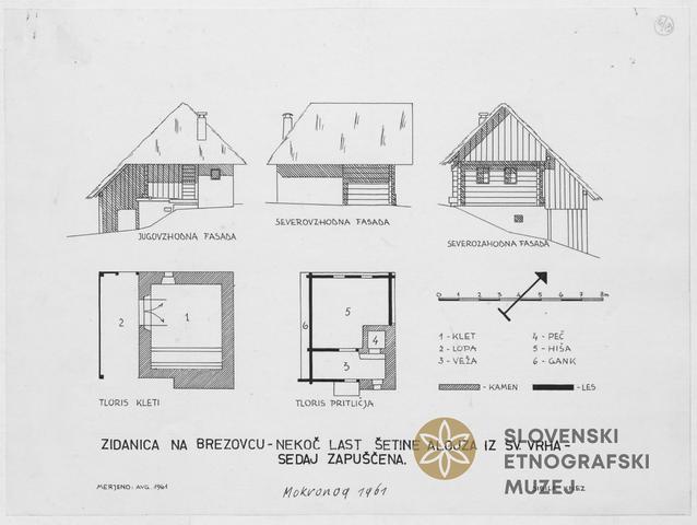 Zidanica: (zapuščena), 3 fasade, 2 tlorisa, Sv. Vrh - na Brezovcu, nekoč last Alojza Šetine iz Sv. Vrha.