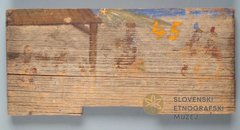 Motiv temelji na Svetem pismu nove zaveze; magi z Vzhoda so šli za zvezdo, ki je napovedovala rojstvo judovskega kralja, stopili so v hišo, kjer so videli Dete z Marijo, se mu poklonili in mu darovali zlata, kadila in mire (Matejev evangelij 2: 1-11). Upodobitev na končnici kaže ikonografske predstave, ki so nastale v poznem srednjem veku. Posneta je po neki novoveški predlogi vendar je prilagojena podolžnemu formatu končnice in na enem prizorišču združuje dve časovno in prostorsko različni sceni: rojstvo in pohod..