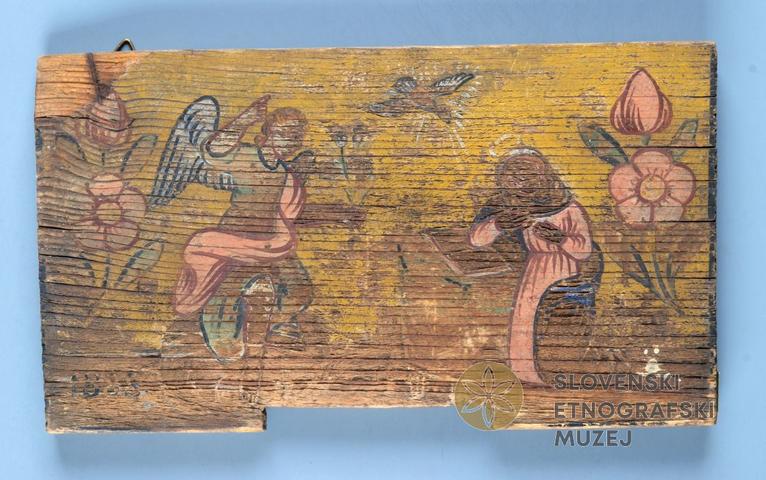 Prizor je utemeljen v Svetem pismu nove zaveze: arhangel Gabrijel sporoči Mariji, da bo spočela od sv. Duha in rodila sina, ki naj mu da ime Jezus (Lukov evangelij 1: 26-33). Delo Selške delavnice.