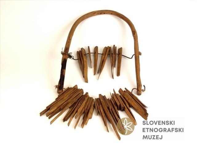 Rovaši, nanizani na vrvico, vpeto v lesen lok. Rovaše je 14. 3. 1912 muzeju poklonil Martin Matjašič, poslanec iz Rosalnic.