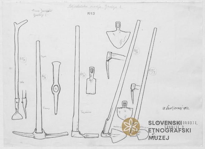 Motika za njivo, poljedelsko orodje. Lastnik Franc Jurgalič, Groblje 2.