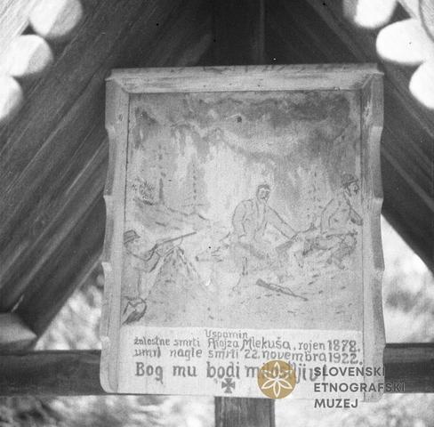 Znamenje v spomin na smrt Tonovega Lojza, ki je bil ustreljen pod Vršičem. (Tablo so Italijani vrgli v vodo.)