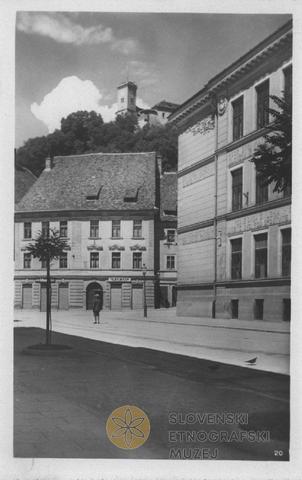 Na razglednici je Št. Jakobski trg pod gradom.