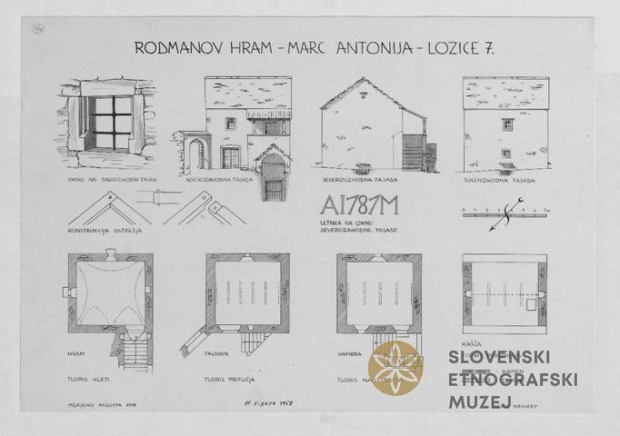 Hram: 3 fasade 4, 4 detajli. Rodmanov hram, Antonija Marc, pri Rodmanovih Lozice 7.