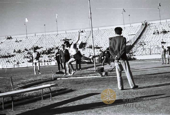 Beograjski stadion Partizana; dvoboj Beograd-Leningrad; suvanje krogle.