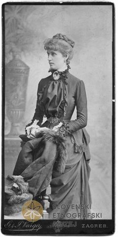 Ena od treh sestra Koželj, poročena Hudowsky, rojena v Celju, med leti 1850-1860, slikana v Zagrebu, v letih 1890-95. Foto: G. & I. Varga, Zagreb.