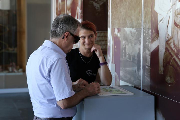 Povečevalne lupe, namenjene slabovidnim obiskovalcem, so na voljo in izposojo na recepciji muzeja.