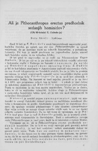 Ali je Pithecanthropus erectus predhodnik sedanjih hominidov? : (ob 80-letnici E. Dubois-ja)