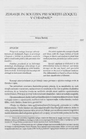Prispevek razlaga koncept zdravje-bolezen pri Indijancih Zoque iz severnega Chiapasa v Mehiki in