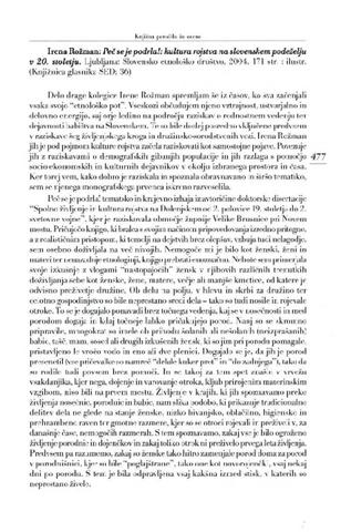 Irena Rožman: Peč se je podrla!: kultura rojstva na slovenskem podeželju v 20. stoletju. Ljubljana: Slovensko etnološko društvo, 2004, 171 str. : ilustr.(Knjižnica Glasnika SED; 36)