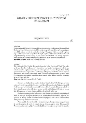 Članek obravnava vprašanje nacionalne