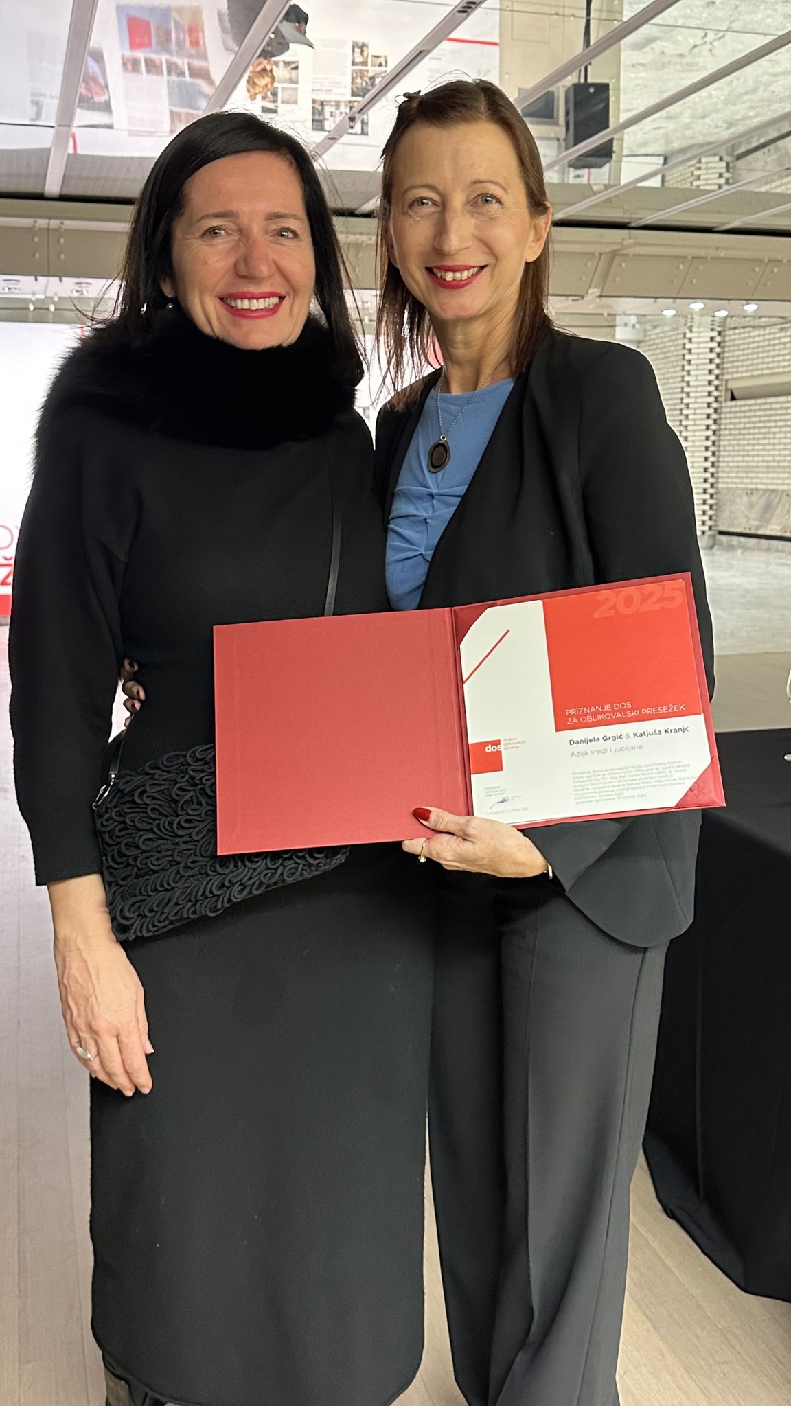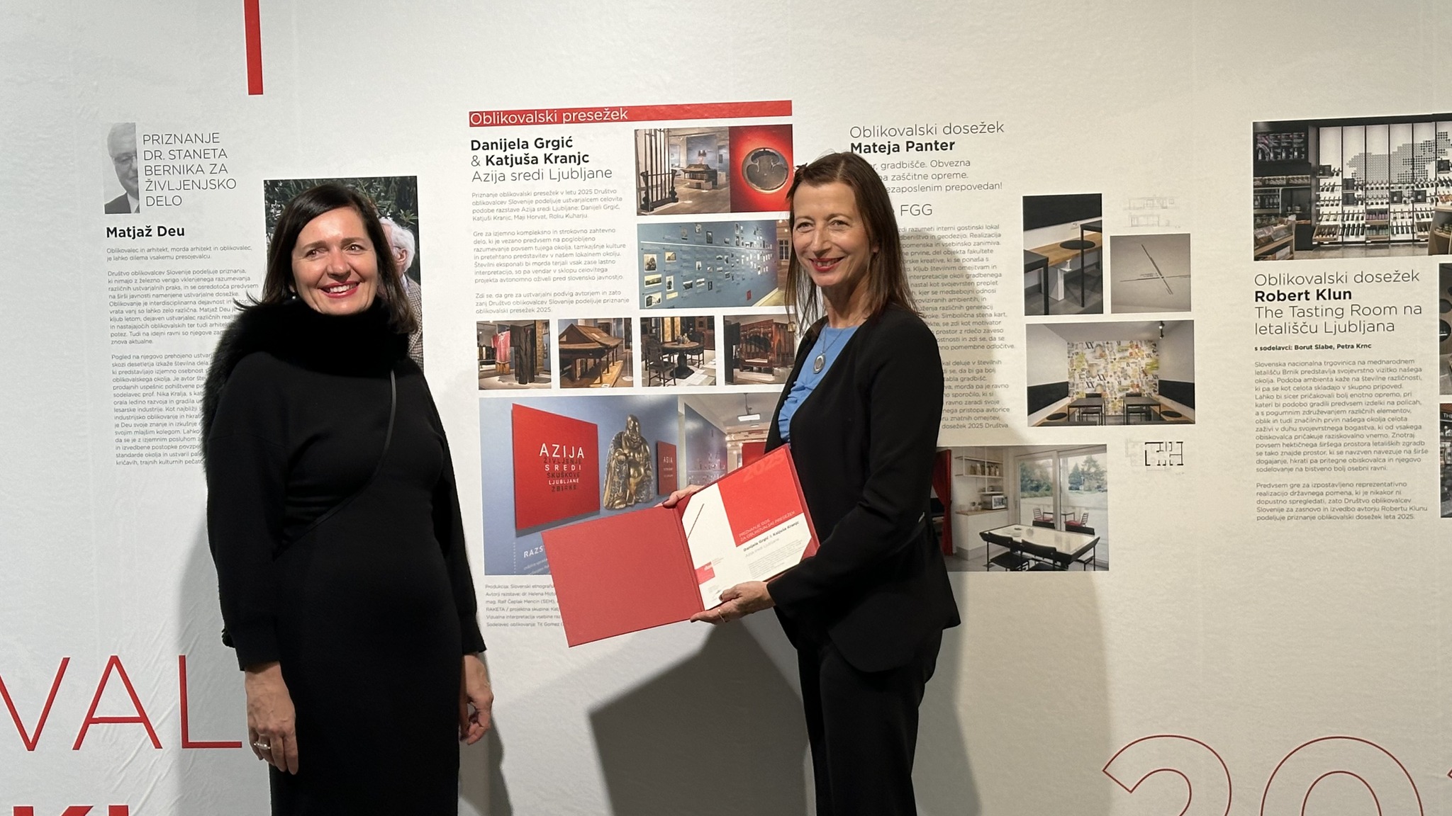 Priznanje DOS oblikovalski presežek v letu 2025 oblikovalkama razstave Azija sredi Ljubljane: Življenje Skuškove zbirke Danijeli Grgić in Katjuši Kranjc