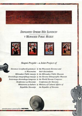 Dopolnitev opreme hiše Slovencev v Milwaukee Public muzeju: [zloženka]