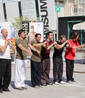Mojster Zeng Xiangbo je aprila 2014 s svojo 15 člansko ekipo s Tajvana drugič obiskal Slovenijo. Avtorja fotografij (Jane Štravs, Jura Štok) sta prizore ujela med intenzivnimi kungfu treningi v klubu Taijiquan Institute.