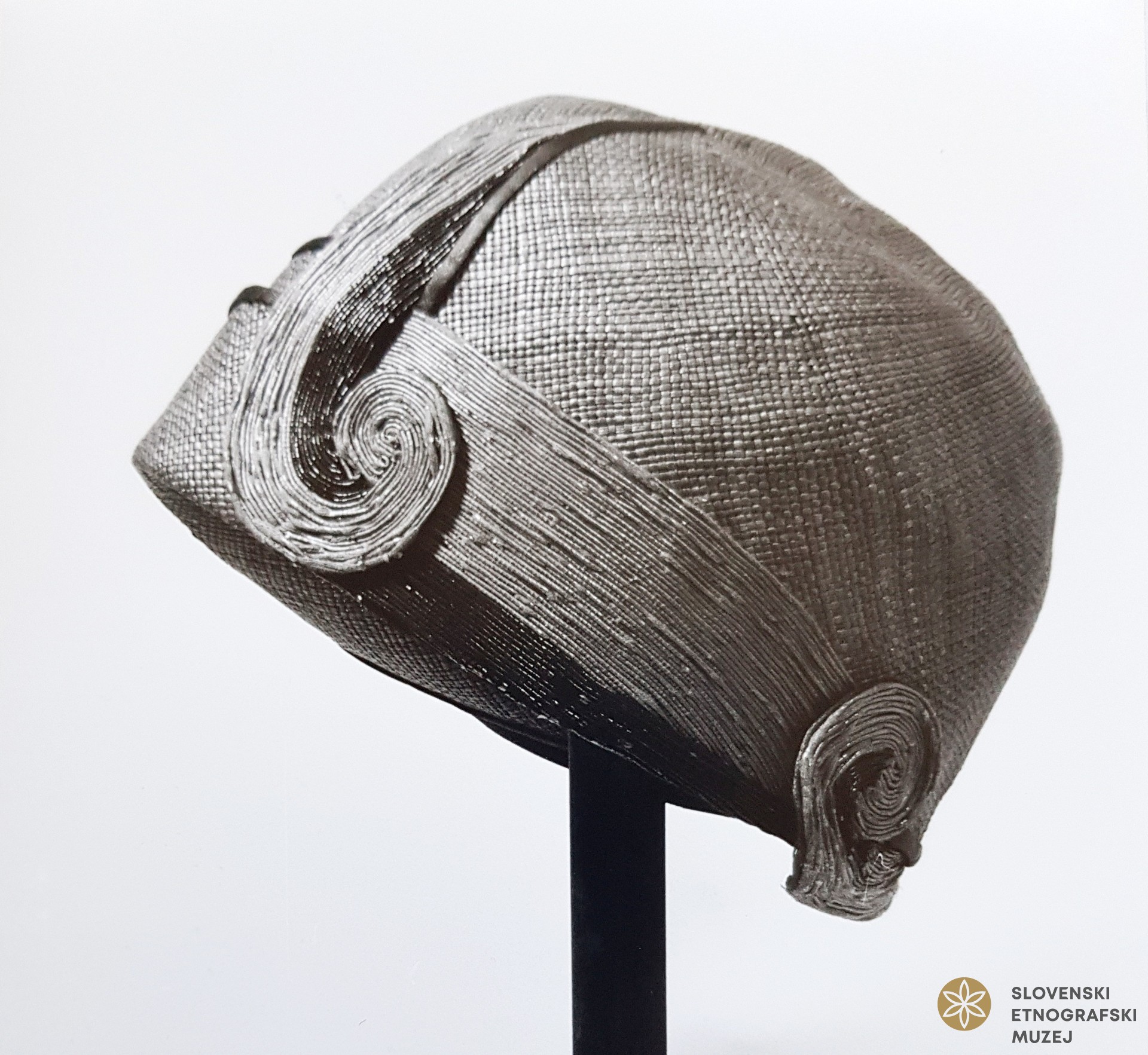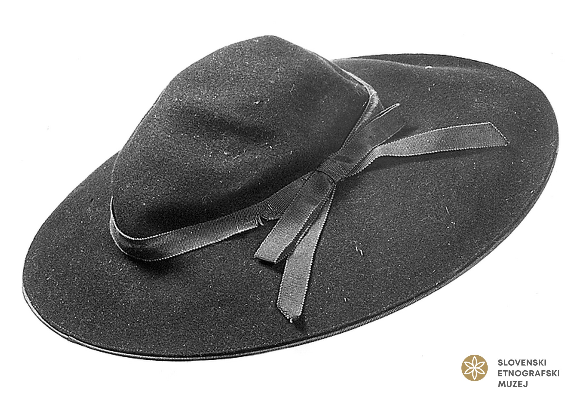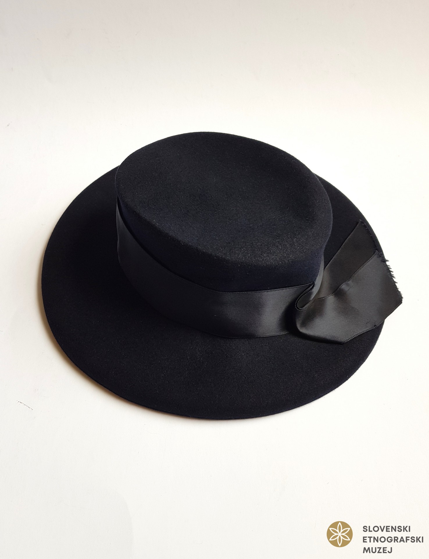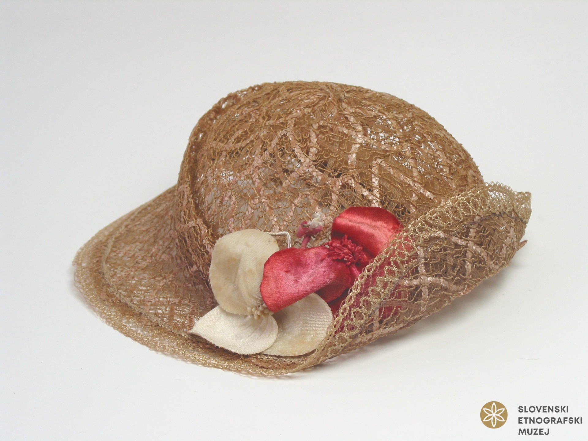 Klobuk iz rjave klobučevine, z nizkim vtisnjenim oglavjem in s posebej krojenimi, navzgor obrnjenimi krajci. Klobuk je bil preoblikovan iz moškega klobuka med 2. svetovno vojno / Žiri v Poljanski dolini / iz zbirke SEM / foto: J. Žagar. Žensko temensko pokrivalo iz svetlo rjavega žameta, oblikovan v dveh zamaknjenih S linijah; na površini pritrjena vlakna (ali peresa).  Na podlagi napis švicarskega izdelovalca / Ljubljana / iz zbirke SEM / foto: J. Žagar. Ženski priležni klobuk asimetrične oblike, brez krajcev; narejen iz slamnate tkanine, podložen s svilo; iz delavnice modistke M. Sark / Ljubljana /  iz zbirke SEM / foto: J. Žagar. Žensko pokrivalo za teme in zatilje iz svetlečih modrikasto črnih kitic, z dodato mrežico za čelo in oči; iz delavnice modistke Mimi Sark / Ljubljana / iz zbirke SEM / foto: J. Žagar. Ženski klobuk iz rjavega volnenega kosmatenega blaga, z okroglim priležnim oglavjem in mehkimi krajci; konfekcijski izdelek. V 60. letih 20. stoletja ga je nosila gimnazijska profesorica / Ljubljana / iz zbirke SEM / foto: J. Žagar. Ženski klobuk iz črne polsti z nizkim ravnim oglavjem, okrašen s širokim svilenim trakom; pražnje pokrivalo šivilje in žene strojevodje, v rabi med svetovnima vojnama in kasneje / Ljubljana, Reka (Hrv.) / iz zbirke SEM / foto: J. Žagar. Ženski meščanski klobuk s plašnicami; iz 1. pol. 19. stoletja/ neznanega izvira / iz zbirke SEM / foto: J. Žagar.  Žensko temensko pokrivalo iz umazano bele klobučevine, utrjeno z vstavljeno žico, z okrasnimi stiliziranimi cveti iz enakega tvoriva in elastiko za pritrjevanje; iz 50. let 20. stoletja / Ljubljana / iz zbirke SEM / foto: J. Žagar. Ženski klobuk iz temno modre klobučevine, z nizkim oglavjem, širokimi krajci ter svilenim okrasnim trakom. Klobuk je bil pred ali med 2. svetovno vojno preoblikovan / Žiri v Poljanski dolini / iz zbirke SEM / foto: J. Žagar. Ženski slamnik iz slamnatih kitic, z ravnim vrhom na oglavju in z mehkimi asimetričnimi krajci; pokrivalo je v celoti prekrito z mehkim sivim tilom. Pred 1. svetovno vojno ga je nosila modistka / Ljubljana / iz zbirke SEM / foto: J. Žagar. Ženski slamnik iz črnih slamnatih trakov, z mehkim oglavjem in utrjenimi asimetričnimi krajci / Ljubljana / iz zbirke SEM / foto: J. Žagar. Ženski slamnik iz rjavih slamnatih kitic, z nizkim oglavjem in ožjimi krajci; iz delavnice modistke Mimi Sark. / Ljubljana / iz zbirke SEM / foto: J. Žagar. Ženski klobuk iz rjave kosmatene klobučevine z okroglim priležnim oglavjem in posebej krojenim čelnim zavihkom; iz delavnice modistke M. Sark / Ljubljana /  iz zbirke SEM / foto: J. Žagar. Ženski slamnik iz svetlega slamnatega prepleta, oblikovanega v nizko okroglo oglavje in posebej krojene široke krajce / Ljubljana / iz zbirke SEM / foto: J. Žagar. Ženski klobuk iz črne polsti, z okroglim oglavjem in izrazito navzgor upognjenimi krajci in asimetrično pentljo. Za žalno rabo je bil klobuk dopolnjen s črno tančico, ki je mehko zavezana okoli oglavja. V 30. letih 20. stoletja ga je nosila žena krojača / Ribnica / iz zbirke SEM / foto: J. Žagar. Ženski klobuček iz umazano bele klobučevine, z ravnim oglavjem in ravnim vrhom, brez krajcev. Pokrivalo je uporabljala žena učitelja / Zalog pri Ljubljani / iz zbirke SEM / foto: J. Žagar. Ženski klobuček iz črne klobučevine, z ravnim oglavjem in ravnim vrhom, brez krajcev. Pokrivalo je uporabljala žena učitelja / Zalog pri Ljubljani / iz zbirke SEM / foto: J. Žagar. Mehak dekliški klobuček iz karirastega volnenega blaga, z mehkim oglavjem in krajci; konfekcijski izdelek iz Italije. Sredi 90. let ga je v mrzlih dneh nosila ljubljanska gimnazijka / Ljubljana / iz zbirke SEM / foto: J. Žagar. Ženski slamnik iz svetlo rjavih, luknjičavo prepletenih slamnatih trakov; z nizkim priležnim oglavjem in asimetričnimi krajci. Slamnik je med svetovnima vojnama nosila žena gimnazijskega profesorja / Ljubljana / iz zbirke SEM / foto: J. Žagar. Otroški slamnik iz svetlečih temno modrih slamnatih trakov, z nizkim oglavjem, razširjenim v široke krajce. Pred 2. svetovno vojno je slamnik nosila deklica iz trgovske družine / Ljubljana / iz zbirke SEM / foto: J. Žagar.