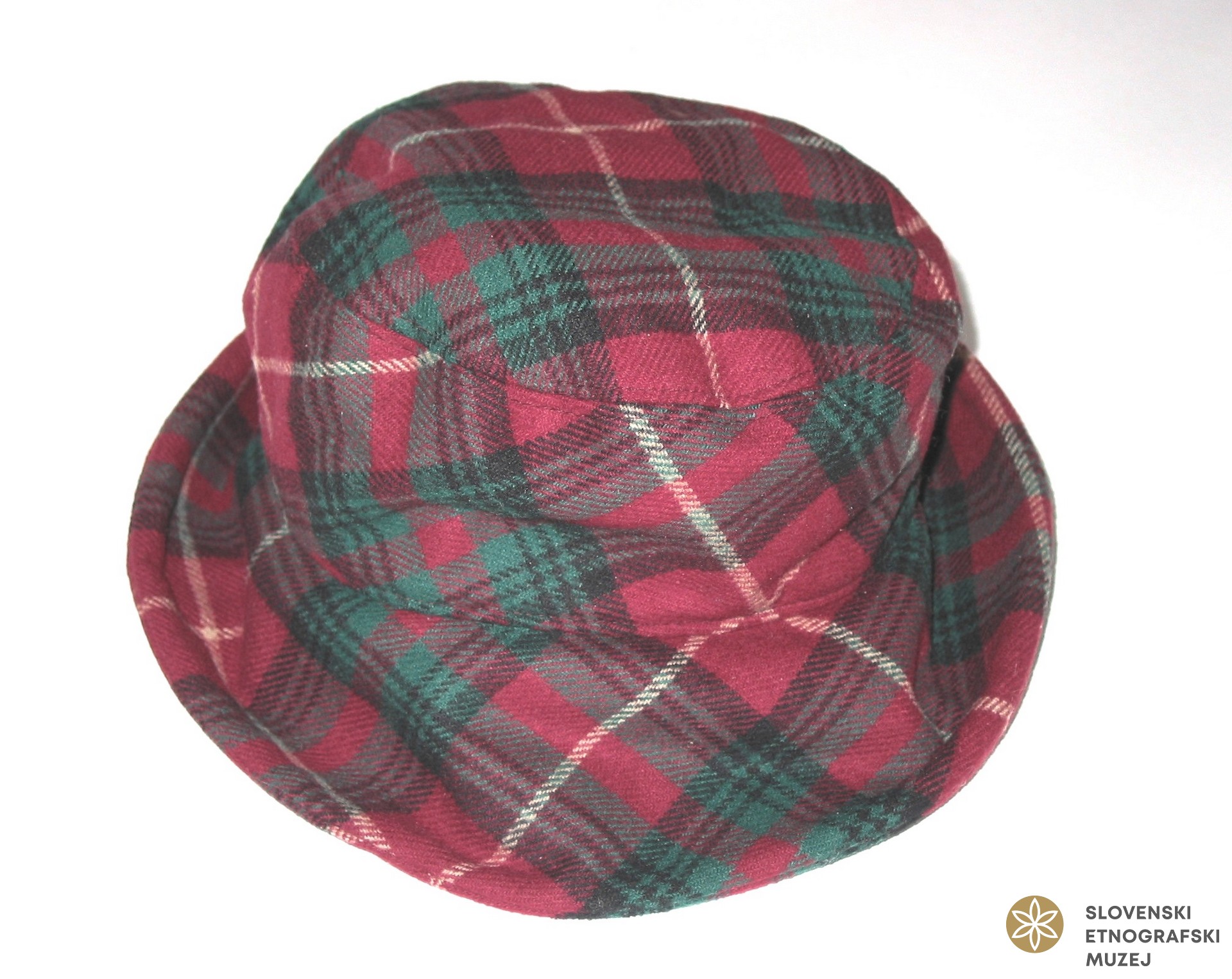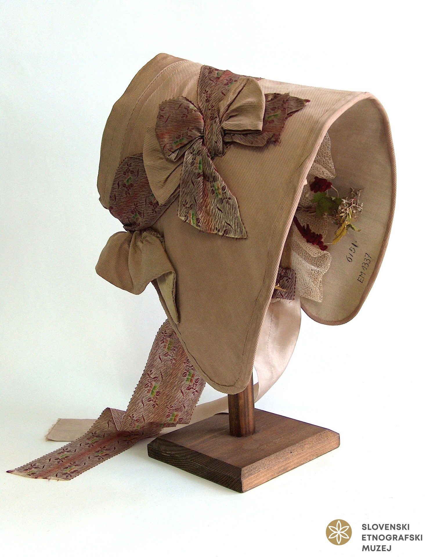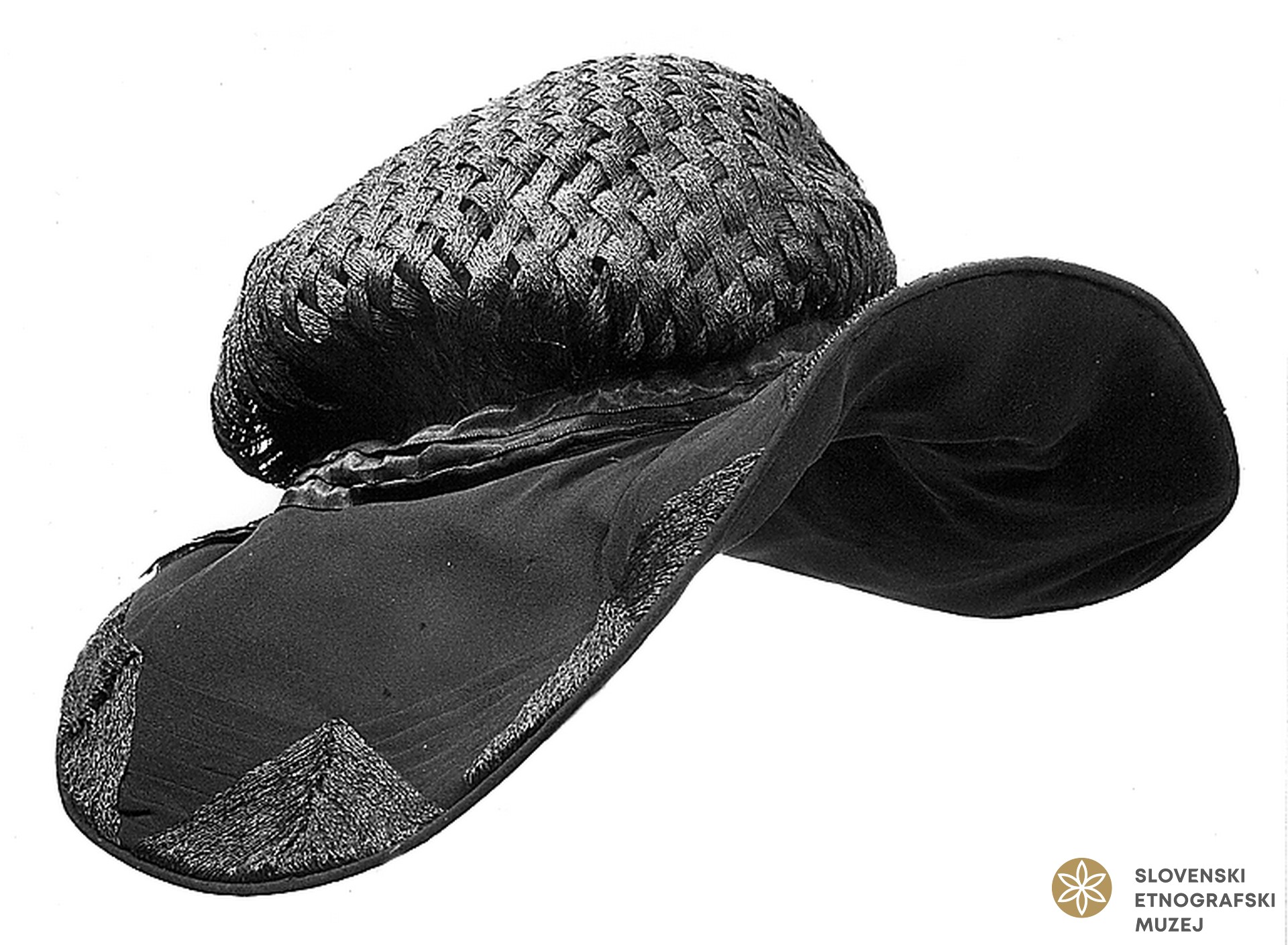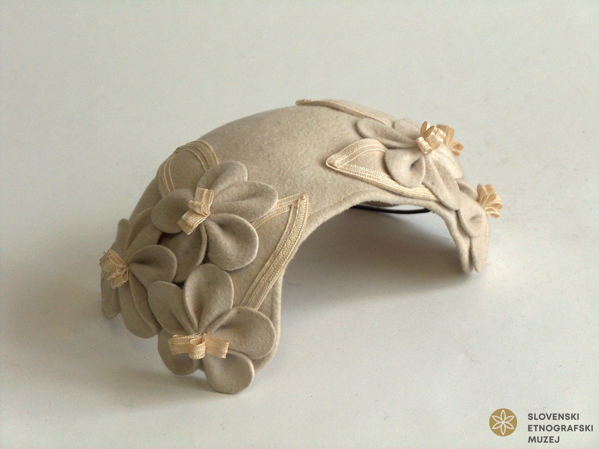 Klobuk iz rjave klobučevine, z nizkim vtisnjenim oglavjem in s posebej krojenimi, navzgor obrnjenimi krajci. Klobuk je bil preoblikovan iz moškega klobuka med 2. svetovno vojno / Žiri v Poljanski dolini / iz zbirke SEM / foto: J. Žagar. Žensko temensko pokrivalo iz svetlo rjavega žameta, oblikovan v dveh zamaknjenih S linijah; na površini pritrjena vlakna (ali peresa).  Na podlagi napis švicarskega izdelovalca / Ljubljana / iz zbirke SEM / foto: J. Žagar. Ženski priležni klobuk asimetrične oblike, brez krajcev; narejen iz slamnate tkanine, podložen s svilo; iz delavnice modistke M. Sark / Ljubljana /  iz zbirke SEM / foto: J. Žagar. Žensko pokrivalo za teme in zatilje iz svetlečih modrikasto črnih kitic, z dodato mrežico za čelo in oči; iz delavnice modistke Mimi Sark / Ljubljana / iz zbirke SEM / foto: J. Žagar. Ženski klobuk iz rjavega volnenega kosmatenega blaga, z okroglim priležnim oglavjem in mehkimi krajci; konfekcijski izdelek. V 60. letih 20. stoletja ga je nosila gimnazijska profesorica / Ljubljana / iz zbirke SEM / foto: J. Žagar. Ženski klobuk iz črne polsti z nizkim ravnim oglavjem, okrašen s širokim svilenim trakom; pražnje pokrivalo šivilje in žene strojevodje, v rabi med svetovnima vojnama in kasneje / Ljubljana, Reka (Hrv.) / iz zbirke SEM / foto: J. Žagar. Ženski meščanski klobuk s plašnicami; iz 1. pol. 19. stoletja/ neznanega izvira / iz zbirke SEM / foto: J. Žagar.  Žensko temensko pokrivalo iz umazano bele klobučevine, utrjeno z vstavljeno žico, z okrasnimi stiliziranimi cveti iz enakega tvoriva in elastiko za pritrjevanje; iz 50. let 20. stoletja / Ljubljana / iz zbirke SEM / foto: J. Žagar. Ženski klobuk iz temno modre klobučevine, z nizkim oglavjem, širokimi krajci ter svilenim okrasnim trakom. Klobuk je bil pred ali med 2. svetovno vojno preoblikovan / Žiri v Poljanski dolini / iz zbirke SEM / foto: J. Žagar. Ženski slamnik iz slamnatih kitic, z ravnim vrhom na oglavju in z mehkimi asimetričnimi krajci; pokrivalo je v celoti prekrito z mehkim sivim tilom. Pred 1. svetovno vojno ga je nosila modistka / Ljubljana / iz zbirke SEM / foto: J. Žagar. Ženski slamnik iz črnih slamnatih trakov, z mehkim oglavjem in utrjenimi asimetričnimi krajci / Ljubljana / iz zbirke SEM / foto: J. Žagar. Ženski slamnik iz rjavih slamnatih kitic, z nizkim oglavjem in ožjimi krajci; iz delavnice modistke Mimi Sark. / Ljubljana / iz zbirke SEM / foto: J. Žagar. Ženski klobuk iz rjave kosmatene klobučevine z okroglim priležnim oglavjem in posebej krojenim čelnim zavihkom; iz delavnice modistke M. Sark / Ljubljana /  iz zbirke SEM / foto: J. Žagar. Ženski slamnik iz svetlega slamnatega prepleta, oblikovanega v nizko okroglo oglavje in posebej krojene široke krajce / Ljubljana / iz zbirke SEM / foto: J. Žagar. Ženski klobuk iz črne polsti, z okroglim oglavjem in izrazito navzgor upognjenimi krajci in asimetrično pentljo. Za žalno rabo je bil klobuk dopolnjen s črno tančico, ki je mehko zavezana okoli oglavja. V 30. letih 20. stoletja ga je nosila žena krojača / Ribnica / iz zbirke SEM / foto: J. Žagar. Ženski klobuček iz umazano bele klobučevine, z ravnim oglavjem in ravnim vrhom, brez krajcev. Pokrivalo je uporabljala žena učitelja / Zalog pri Ljubljani / iz zbirke SEM / foto: J. Žagar. Ženski klobuček iz črne klobučevine, z ravnim oglavjem in ravnim vrhom, brez krajcev. Pokrivalo je uporabljala žena učitelja / Zalog pri Ljubljani / iz zbirke SEM / foto: J. Žagar. Mehak dekliški klobuček iz karirastega volnenega blaga, z mehkim oglavjem in krajci; konfekcijski izdelek iz Italije. Sredi 90. let ga je v mrzlih dneh nosila ljubljanska gimnazijka / Ljubljana / iz zbirke SEM / foto: J. Žagar. Ženski slamnik iz svetlo rjavih, luknjičavo prepletenih slamnatih trakov; z nizkim priležnim oglavjem in asimetričnimi krajci. Slamnik je med svetovnima vojnama nosila žena gimnazijskega profesorja / Ljubljana / iz zbirke SEM / foto: J. Žagar. Otroški slamnik iz svetlečih temno modrih slamnatih trakov, z nizkim oglavjem, razširjenim v široke krajce. Pred 2. svetovno vojno je slamnik nosila deklica iz trgovske družine / Ljubljana / iz zbirke SEM / foto: J. Žagar.
